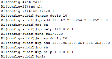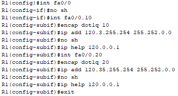 ㆍ포트 활성화, dot1Q 프로토콜 적용 및 ip help 명령어를 통한 DHCP 설정