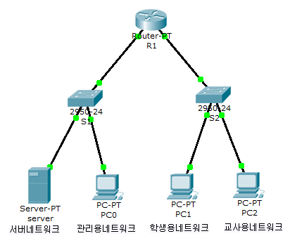 - S1, S2 장비의 게이트웨이는 해당 서브넷에서 호스트에 할당 가능한 마지막 IP주소를 사용하시오.