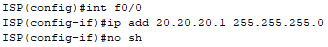 ㆍServer의 경우 ISP(Fa0/0) 주소가 20.20.20.1/24 이므로 해당 주소가 Server의 게이트웨이