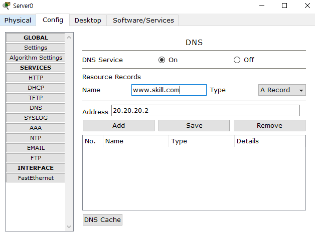 ㆍName은 www.skill.com / Adress는 20.20.20.2 (Server IP 주소)