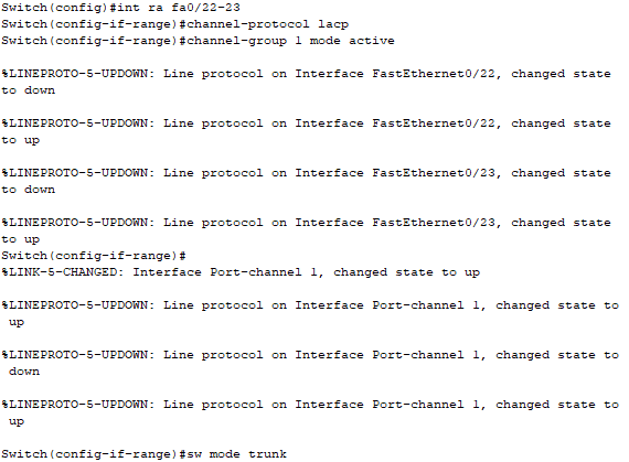 - Switch0과 Switch1에 LACP를 구성하시오.