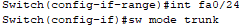 - R1,R2의 Fa0/0 포트와 Switch0,Switch1에서 모든 VLAN Data가 전송되도록 설정하시오.