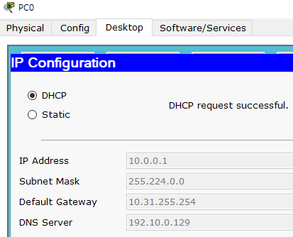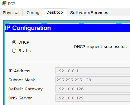 - PC0의 IP는 첫 번째 서브넷의 할당 가능한 첫 번째 주소를 사용하고,게이트웨이 주소는 할당 가능한 마지막 주소를 사용하시오.